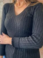Confeccionada em tecido de malha com ponto em cabo, essa blusa apresenta gola V profunda que valoriza o colo com charme. Seu caimento regular garante conforto e ótimo ajuste ao corpo, ideal para temperaturas de primavera e outono. Combine com jeans, calças de alfaiataria ou saias para um visual cheio de personalidade.