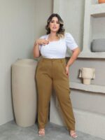A calça plus size alfaiataria Bárbara é a escolha ideal para um look casual e elegante. Com um design de perna reta e comprimento cropped, ela proporciona um ajuste regular que valoriza a silhueta. Na cor bege, esta calça é versátil e perfeita para diversas ocasiões. Feita com tecido de elasticidade média, oferece conforto ao longo do dia. Os detalhes de botão e bolsos adicionam funcionalidade e estilo à peça, tornando-a prática e sofisticada para o uso diário.