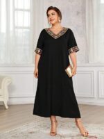Vestido Plus Size Com Lantejoula de Contraste Carina